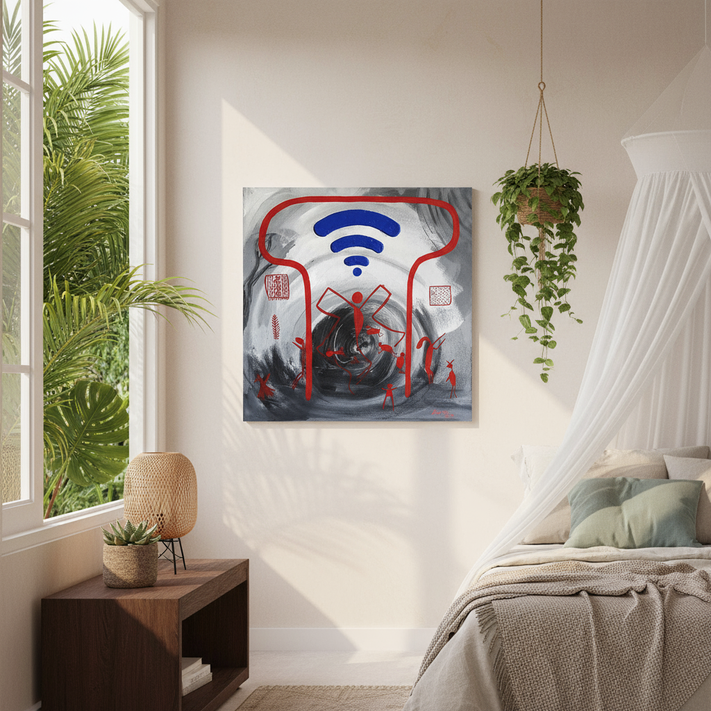 Isabel Cristina Pérez Ospina. Serie “Raudal de la Memoria” #4. Acrílico, relieve y tejidos.  50 x 50 cm. 2024.