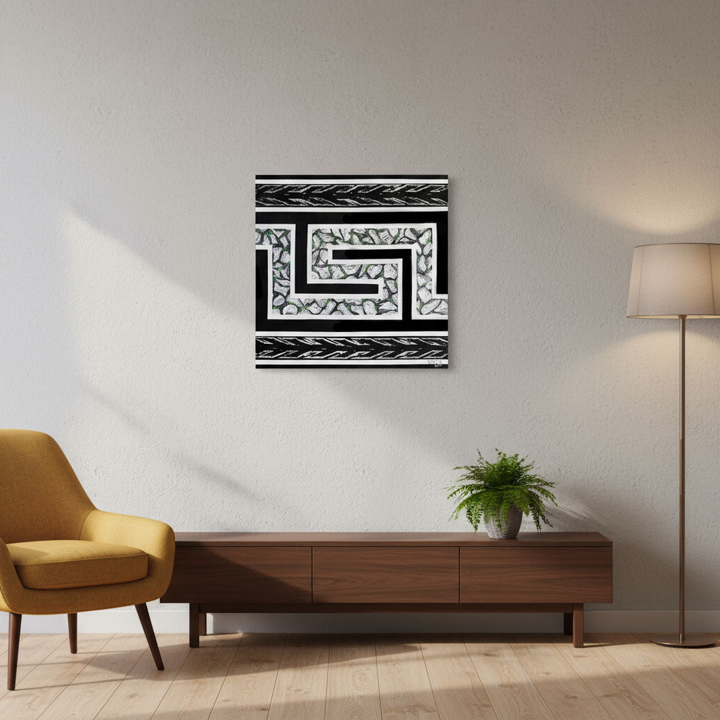 Yessie Morales Vásquez. De la serie "Atributos Geométricos" #3. Acrílico y grabado. 50 x 50 cm. 2024.